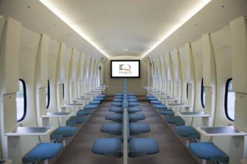 La firma de diseño Design Q reveló una propuesta preliminar para el interior de un avion de pasajeros, en el que se muestra un diseño simple y que apunta a optimizar espacios para aumentar la capacidad de los pasajeros.