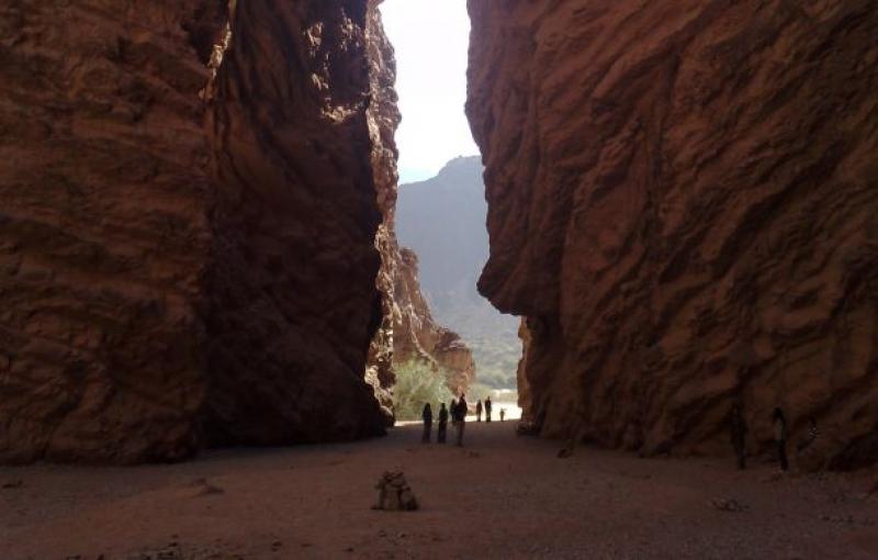 Siempre con rumbo el oeste, subimos entonces la Cuesta del Obispo, una de las rutas panorámicas más espectaculares del país. La ruta serpentea por la montaña desde los 1900 metros sobre el nivel del mar hasta los 2470 de la Piedra del Molino, el punto más alto, ya dentro del Parque Nacional Los Cardones. En ese lugar hay una ermita al borde de un abismo y una piedra circular tallada que perteneció a algún molino hidráulico; nadie se explica cómo ni cuándo llegó a ese lugar.